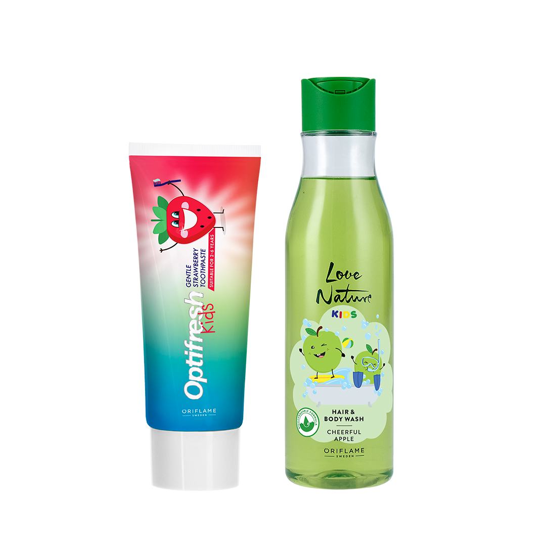 Combo Kem đánh răng trẻ em Optifresh và Sữa tắm gội trẻ em hương Táo Xanh Love Nature Kids (44954 & 40775)